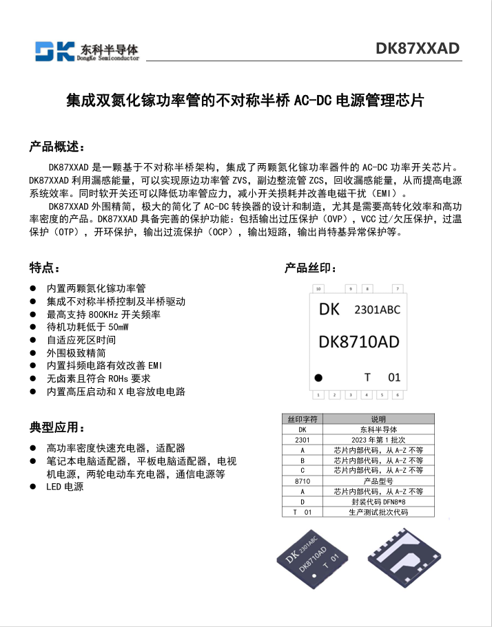 東科半導(dǎo)體(安徽)股份有限公司是國(guó)內(nèi)為數(shù)不多的集研發(fā)、設(shè)計(jì)、生產(chǎn)、銷售為一體的集成電路科技創(chuàng)新型企業(yè),是國(guó)家級(jí)專精特新小巨人企業(yè),2022年榮獲安徽省專精特新50強(qiáng)企業(yè)。公司分別在青島、北京、無錫、馬鞍山、深圳設(shè)立有5個(gè)研發(fā)中心,一個(gè)封測(cè)基地。公司采用市場(chǎng)少有的“Fabless+封測(cè)”的經(jīng)營(yíng)模式,在具備自主芯片設(shè)計(jì)能力的同時(shí),擁有自主封測(cè)能力。公司產(chǎn)品主要方向是高性能模擬和數(shù)?;旌项愲娫垂芾硇酒?,第三代化合物半導(dǎo)體電源管理芯片和其他模擬類芯片。